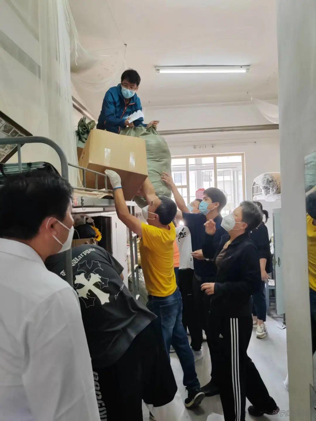 领导、专任教师和行政人员等十余人组成的教师志愿者团队,将新生报到前邮寄来的行李分批运送到寝室楼。