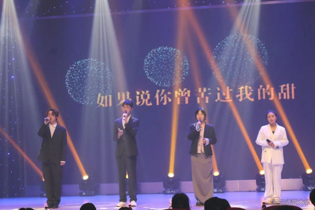 雨后的彩虹无比秀丽,雨后的彩虹无比清晰。由赵梓铭、王钧葆、赵晴、金相玉演唱的歌曲《彩虹》温柔地唱出了歌词里慢慢的诉说,暖阳般的温暖之声荡漾在台下每一位观众的心中。