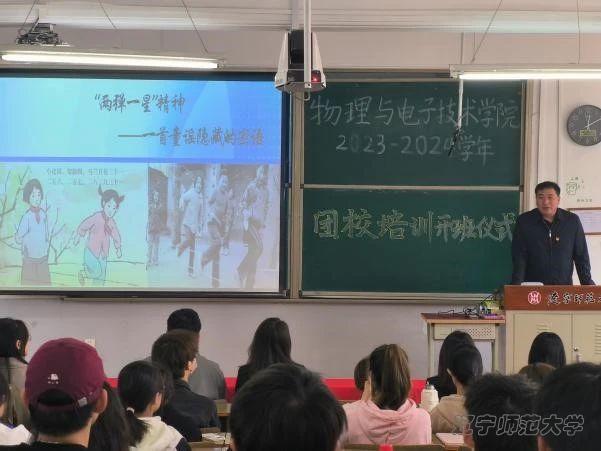 最后,由党委副书记雷鸣老师进行团校培训第一讲。雷鸣老师通过一首童谣开启了本次培训。这首童谣引出了“两弹一星”的中国精神以及核试验基地的创建历程,指出了“两弹一星”精神是爱国主义、集体主义、社会主义精神和科学精神的生动体现,是中国共产党领导中国人民在20世纪创造的宝贵精神财富。最后雷鸣老师号召大家传承红色基因,心系团员青年,提升个人素质,勇于担当奉献,锤炼优良作风,追寻永不落幕的时代之星。