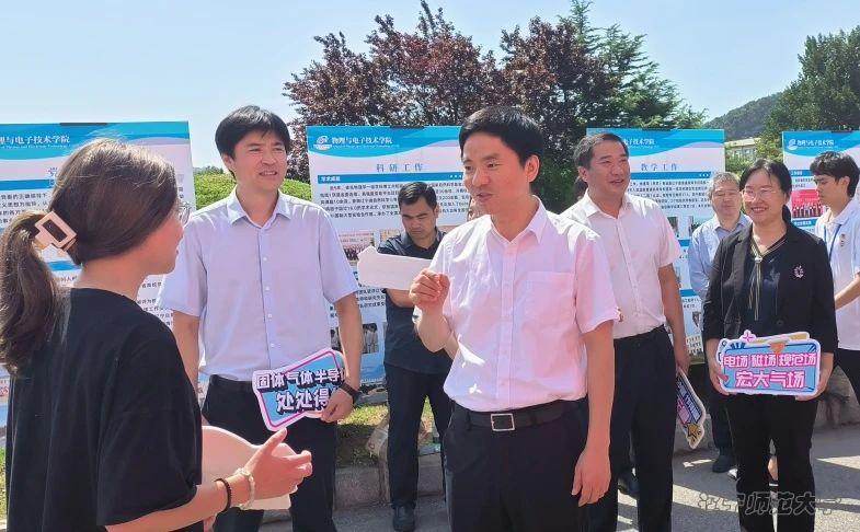迎新场地看望迎新工作人员与2024级新生们,对其给予问候,并为新生带来迎新礼包,鼓励迎新工作人员能够坚持以最饱满的热情面对新生与家长们,展现物电学子的精神风貌,为新生们做好表率。并在世界杯