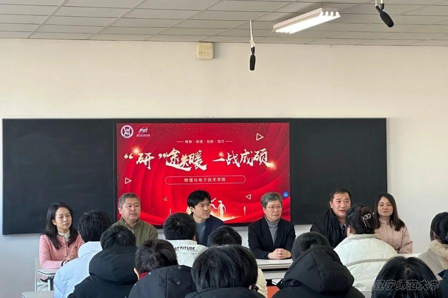 辅导员任美懿老师在理化楼A719与考研学子见面并进行暖心慰问。老师们的暖心讲话,如春风化雨,驱散了冬日的严寒,字里行间皆是对同学们的关怀与期待。