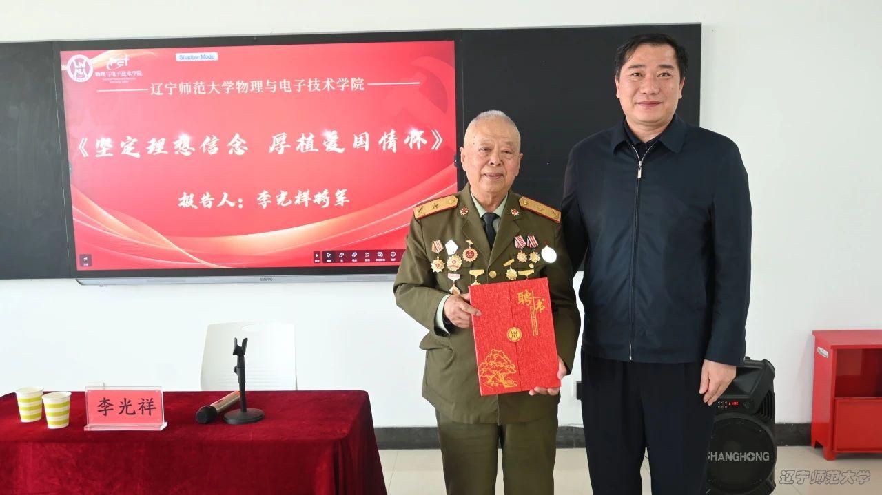 党委副书记雷鸣老师为李光祥将军颁发校外辅导员证书,为本次活动画上圆满句号。