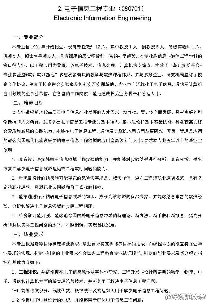 电子信息工程专业本科人才培养方案