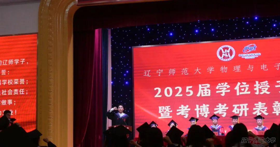 领导、导师、辅导员们致以崇高敬意,同时向即将开启人生新篇章的同窗们献上真诚的祝贺。号召同学们要永远怀揣梦想,永远充满朝气,始终保持热爱,奔赴山海,祝愿母校辽师大人才辈出,华章永续!