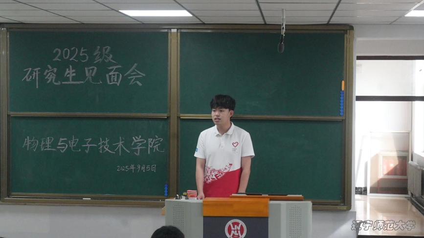 “格物 明理 创新 笃行”院训,梁钰川勉励全体新生牢记对教育事业与物理学科的初心热爱,以坚韧不拔的物电精神锤炼专业能力,在学术探索与教育实践中不断求索,与世界杯