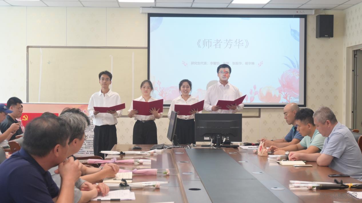 、研究生学生代表们分别以饱含深情的诗歌朗诵拉开序幕。“三尺讲台存日月,一支粉笔写春秋”,同学们用真挚的语言、饱满的情感,倾诉了对教师辛勤付出的感恩与敬意。